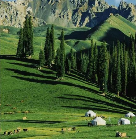 新疆,早晚溫差較大,達(dá)到10至15度左右,另外有些情況,如天池過夜、遊南山牧場(chǎng)、登一號(hào)冰川、遊喀納斯